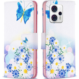 Pattintható tok a Motorola Moto G53 5G / G23 / G13, Wallet, butterfly & flowers, kék