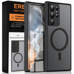 Tok Samsung Galaxy S22 Ultra-hoz, MagSafe, ERBORD Matt Case, fekete + képernyőüveg