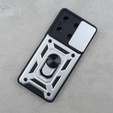 Telefontok a Infinix Note 30 Pro, CamShield Slide, ezüst tok állvánnyal és mágneses ujjmarkolattal. A tok kiváló minőségű anyagokból készült, teljesen funkcionális és szilárd védelmet nyújt a készüléknek. A tok műanyagból és rugalmas, edzett TPU gumiból készült. A hátlapon praktikus fém ujjfogantyú található, amely autós mágnestartó rögzítésére használható. A tok megerősített sarkokkal és élekkel rendelkezik, és megbízhatóan védi a telefont a sérülésektől. Egy kiegészítő keret védi az okostelefon oldalait és sarkait, és hatékonyan szigeteli a képernyőt azoktól a felületektől, amelyeken fekszik. A tok illeszkedik a készülék adott modelljéhez, rendelkezik a szükséges kivágásokkal és gombokkal, és teljesen működőképes.