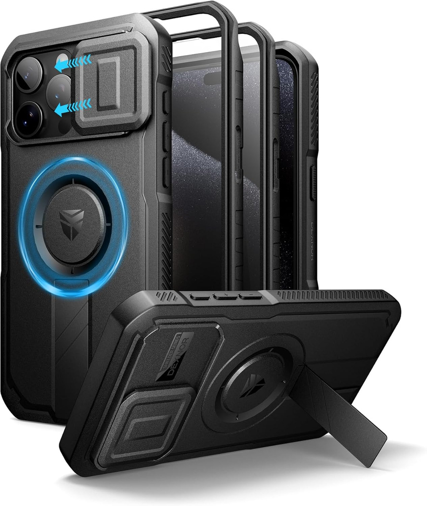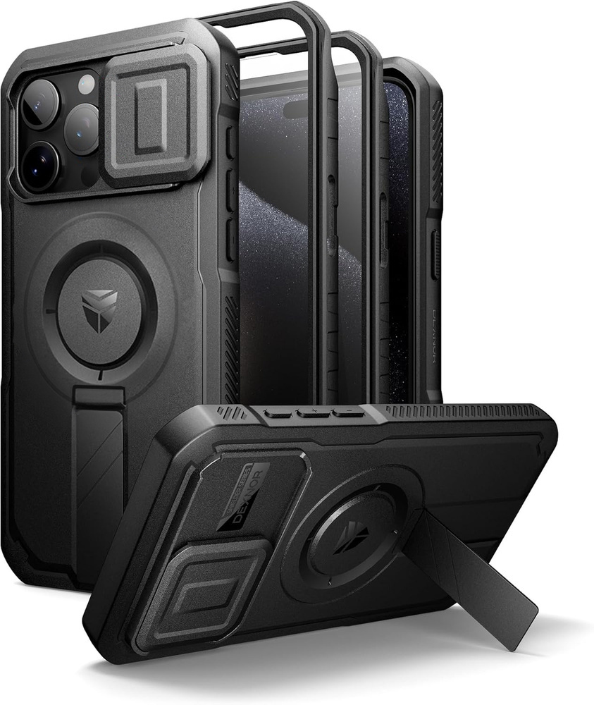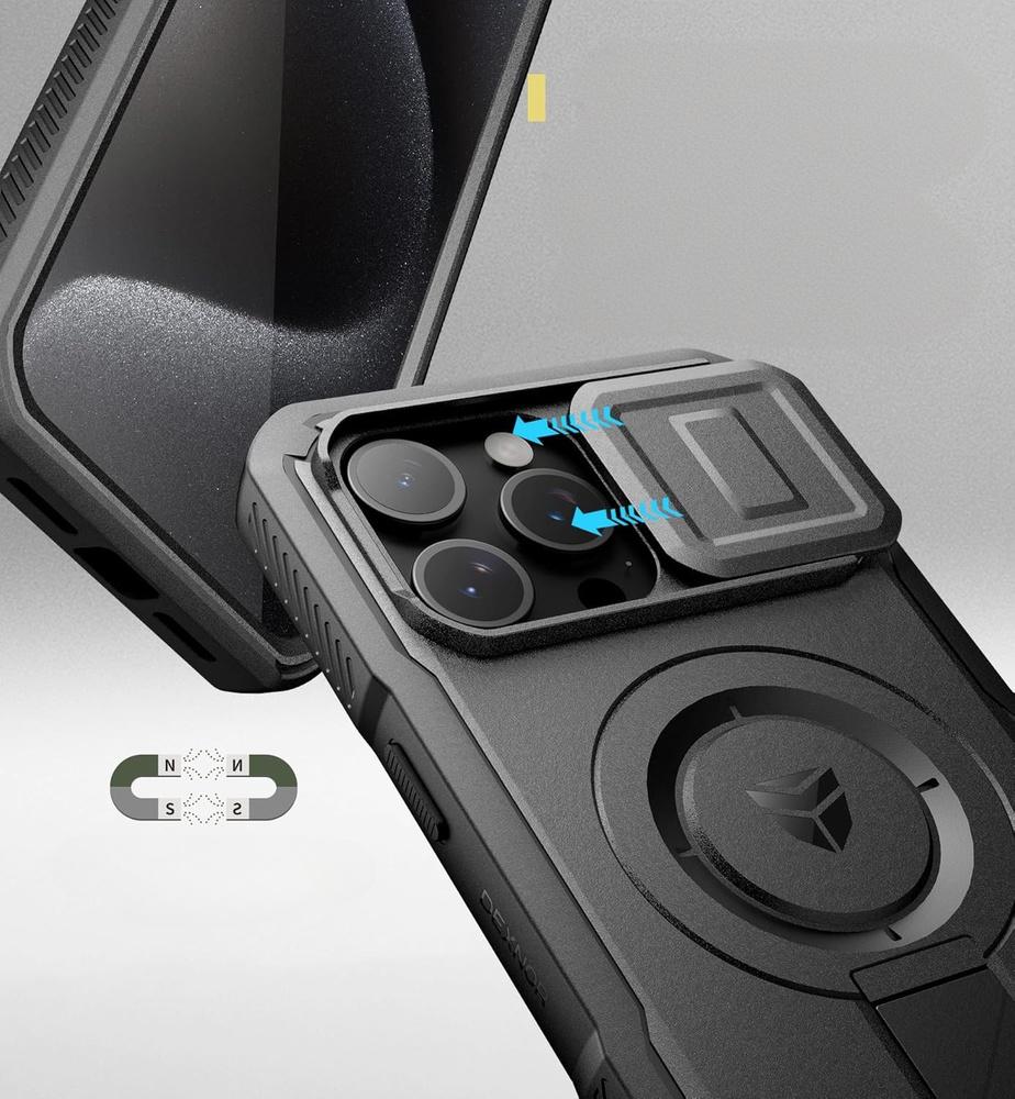 Páncélozott tok iPhone 15 Pro Max készülékhez, Dexnor CamProtect MagSafe, fekete (Két keret):
